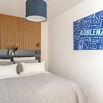 Studio Loreley Am Rhein, Dein Modernes Zuhause Auf Zeit Appartement Koblenz van 41 m^2 is op circa 200 meter verwijderd van Pfarrkirche St. Maximin gelegen en heeft uitzicht op de tuin. Het 1-slaapkamer appartement biedt moderne faciliteiten, zoals Wi-Fi en benodigdheden zoals parkeerplaatsen voor autoreizigers.